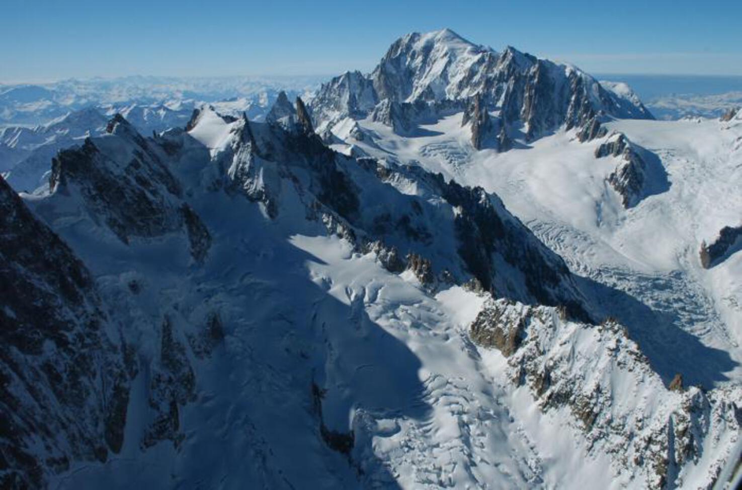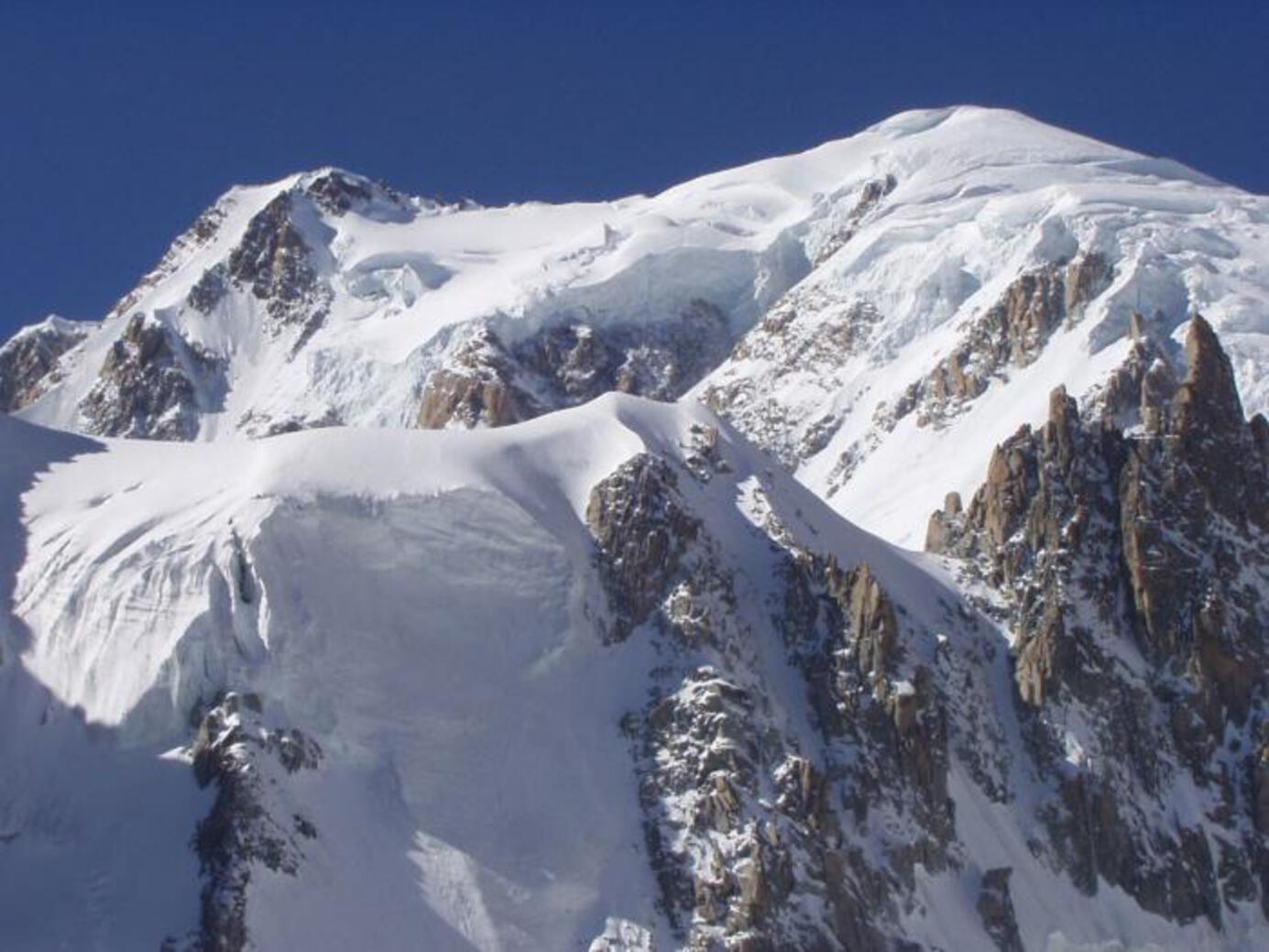 Il Monte Bianco con i suoi 4807 metri di quota è la cima più alta d’Europa, scalata per la prima volta nel 1786 da Jacques Balmat e Michel Gabriel Paccard. Si eleva sullo spartiacque che divide l‘Italia dalla Francia; ai suoi piedi sorgono Courmayeur sul versante italiano e Chamonix su quello francese, rese celeberrime in tutto il mondo proprio dalla maestosa montagna che le sovrasta. Il versante italiano ha un aspetto severo, per la presenza di alte pareti rocciose policrome, mentre il versante francese si mostra più imponente, ricoperto com‘è da candidi e immensi ghiacciai.