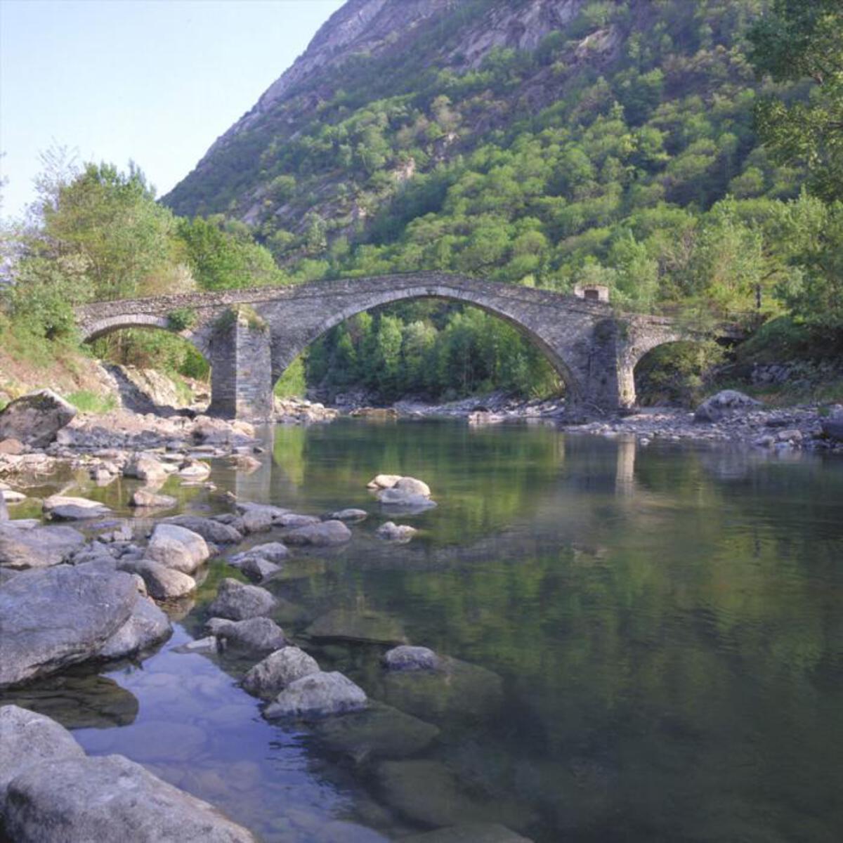 Fra i ponti in pietra in stile romanico ancora esistenti, quello di Echallod, che collega il paese omonimo ad Arnad, presenta caratteristiche davvero singolari: la struttura simmetrica a schiena d’asino si poggia su tre grandi archi a tutto sesto “puntellati” ai lati da importanti contrafforti in pietrame e malta. Sulla spalla destra è situata un’edicola a salvaguardia e protezione dei viandanti.
